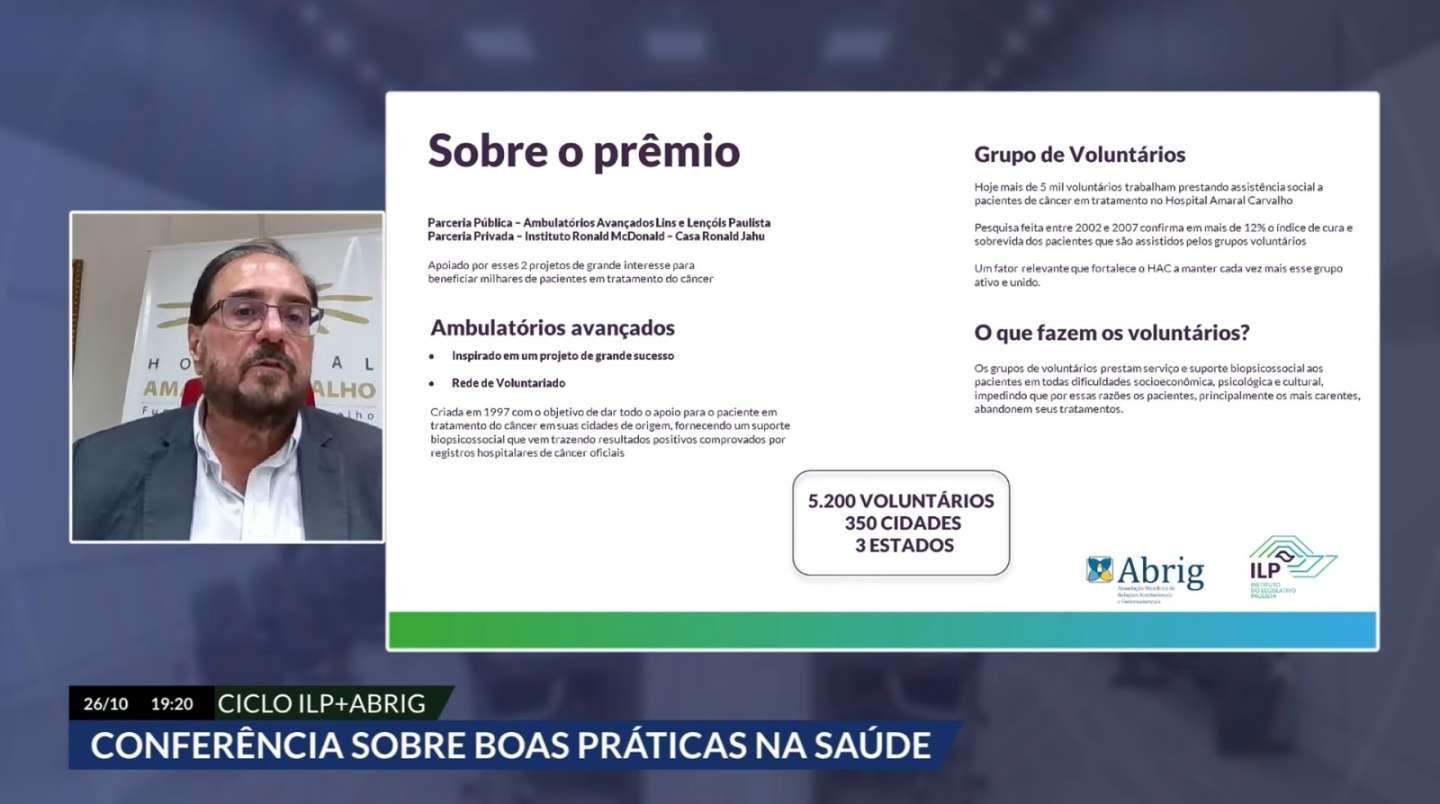 O primeiro bate-papo da série recebeu a entidade vencedora da categoria “RIG em Organização Privada ou Mista”, a Fundação Doutor Amaral Carvalho, com o projeto “Vidas Cuidando de Vidas e RIG”. Antônio Navarro, diretor superintendente da Fundação; Ricardo Conti, secretário da Saúde de Lençóis Paulista/SP; e Antônio Barata, presidente da Casa Ronald McDonald Jaú/SP abordaram a experiência e as estratégias utilizadas para a implementação dos Ambulatórios Avançados de Lins e Lençóis Paulista e da Casa de Apoio Ronald McDonald, que forneceram suporte para a população adulta e infantil no atendimento oncológico.