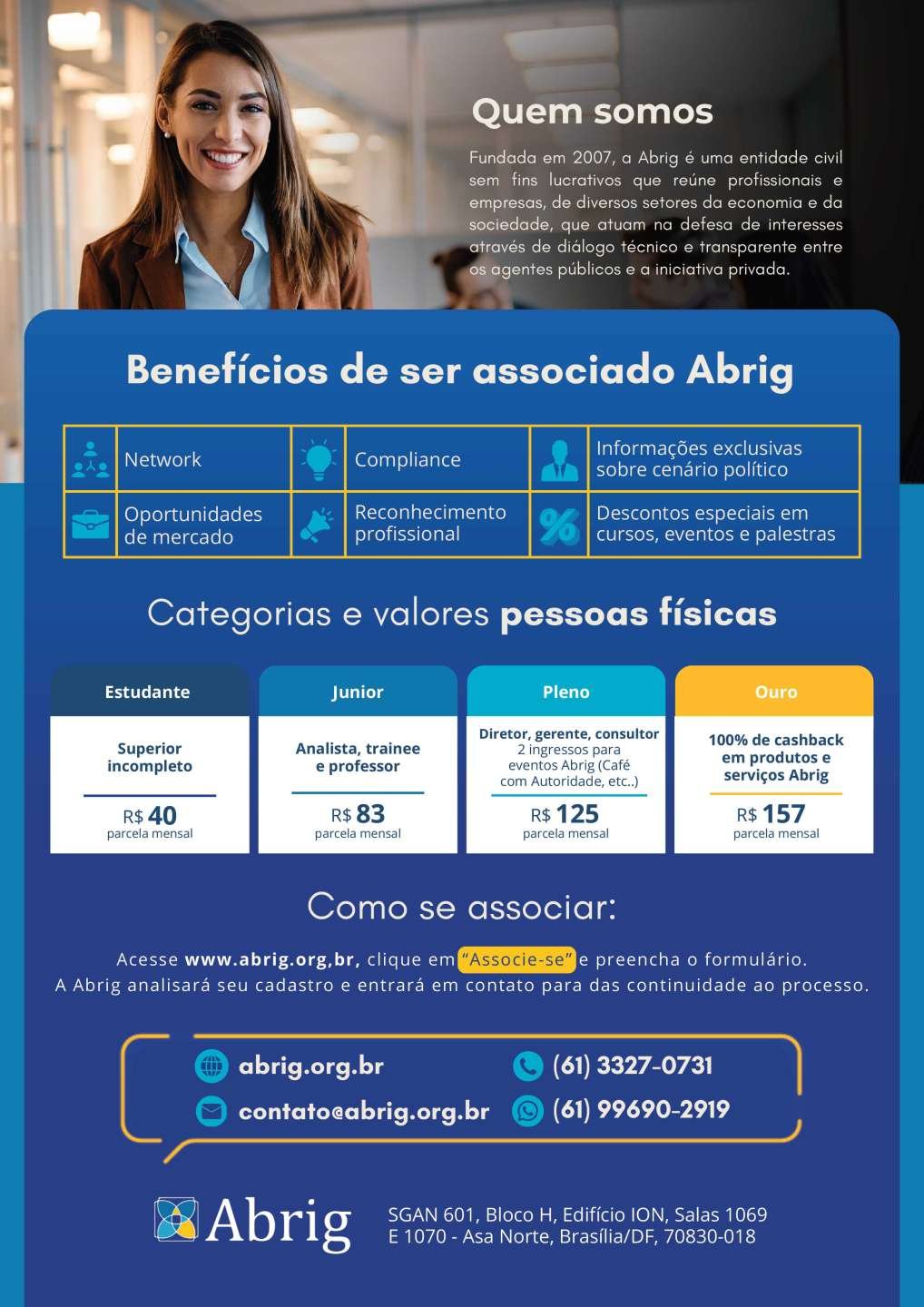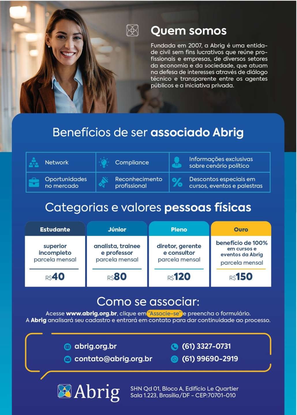Estar na Abrig é aderir a uma regra rígida de Compliance e integrar uma rede de relacionamentos de relevância no diálogo entre público e privado, seja nos debates de políticas públicas ou no desenvolvimento da carreira de RIG.