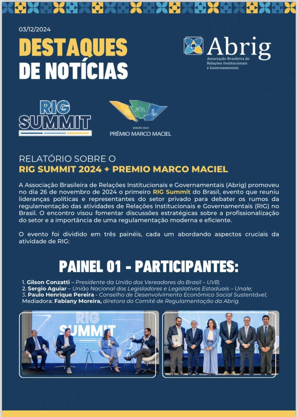 Em 2025, a 8ª Edição do Prêmio Abrig Marco Maciel será realizada no dia 26 de agosto, em Brasília/DF.